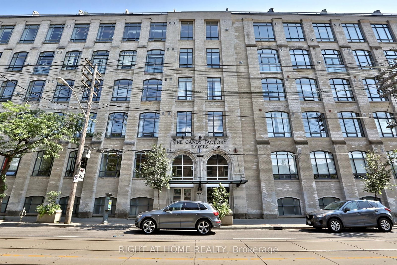 Candy Factory Lofts at 993 Queen Street West is one of Toronto’s most iconic hard loft conversions, completed around 1999–2000 with 121 authentic loft suites across 250,000 square feet.