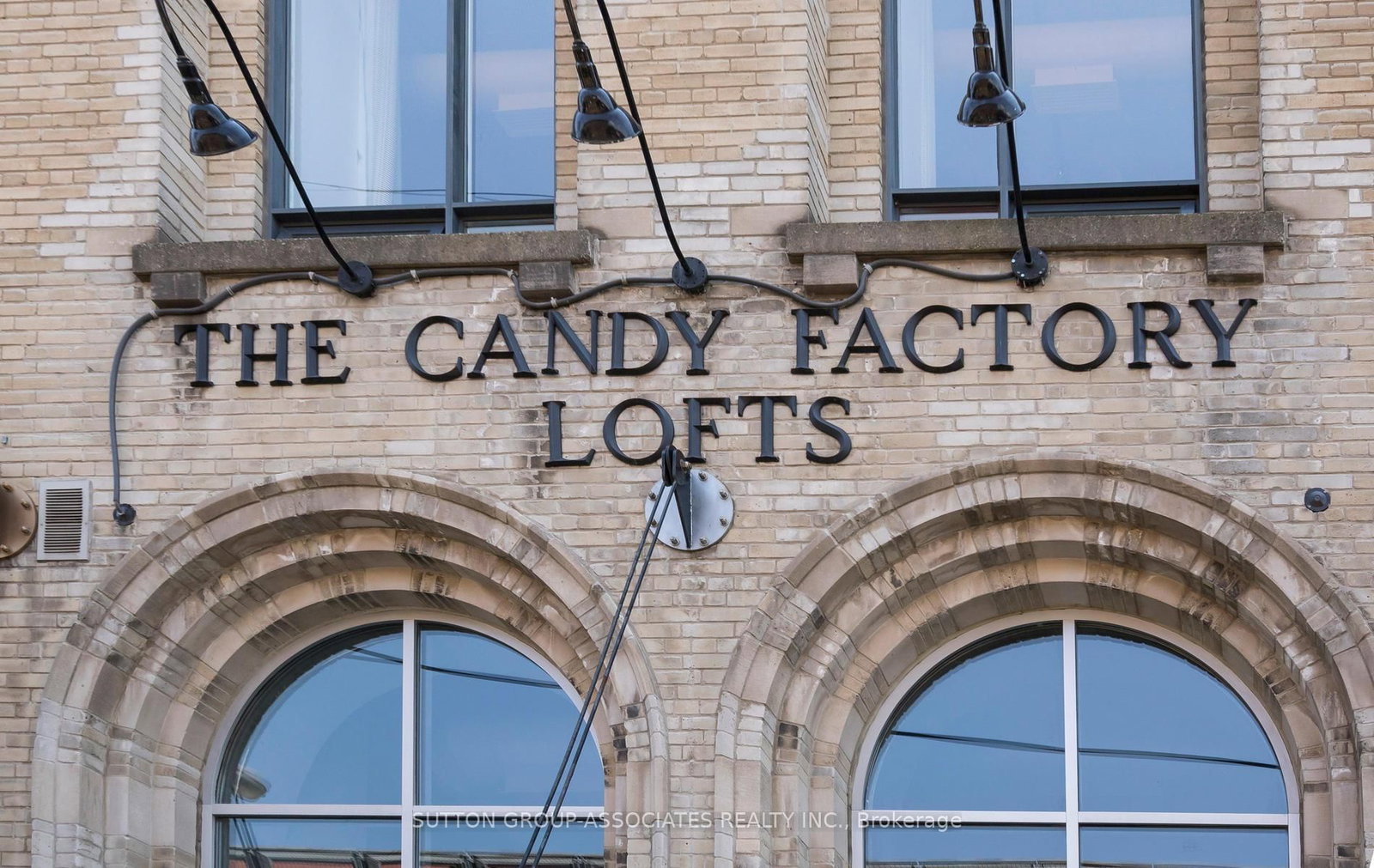 Yes. The building repurposes an early-20th-century industrial complex used as a candy factory from 1963–1988. Original brick, beams, and warehouse windows were retained during the conversion, making it one of Toronto’s most authentic hard loft buildings.